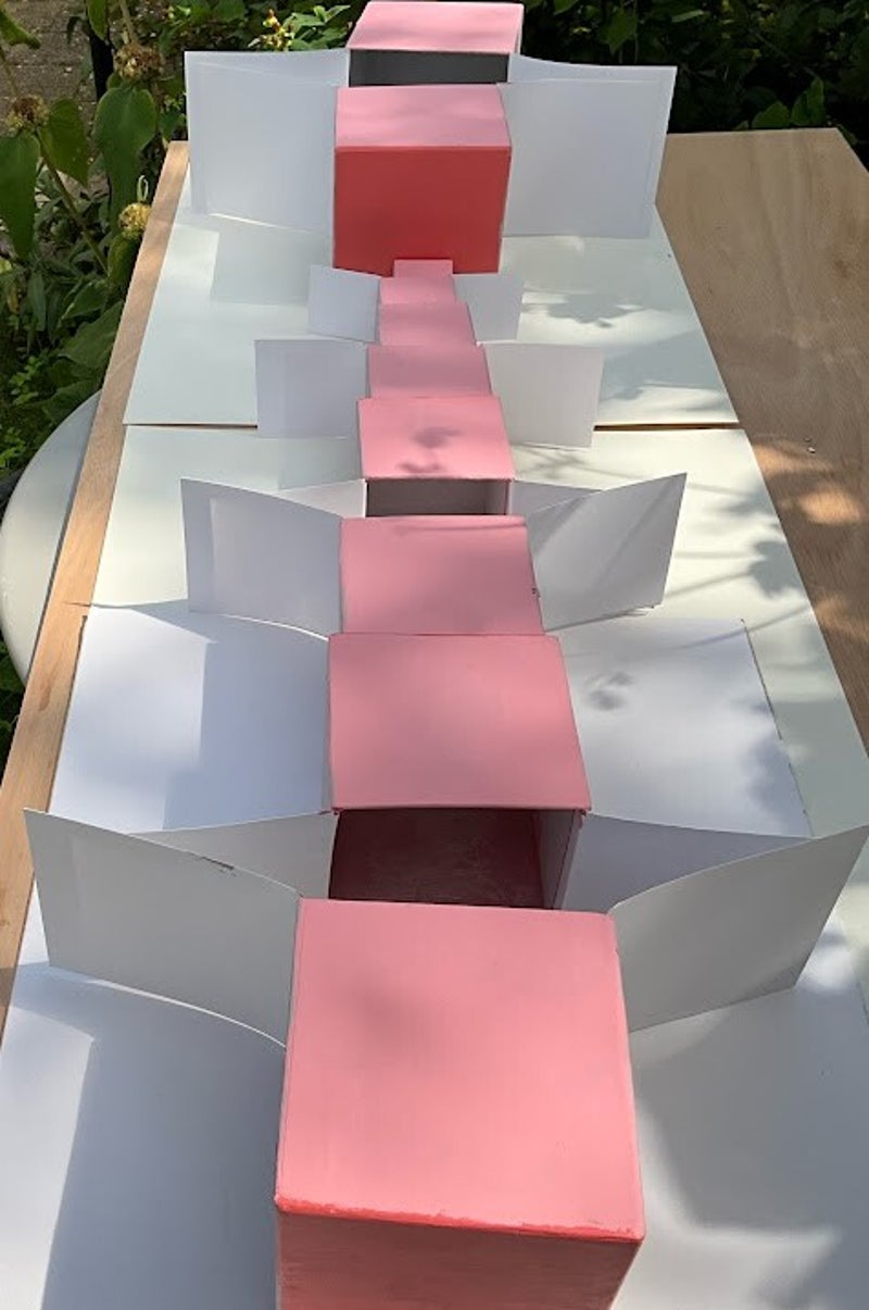 boven: papieren nest kubussen voor en achter < 13 x13 cm